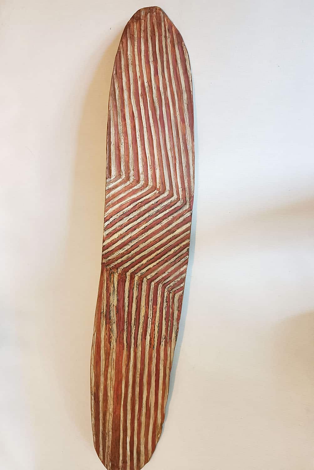 Fine Aboriginal Wunda shield carved with Zigzag Geometric fluted design,