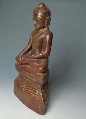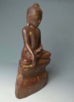 Beautiful and elegant example in carved hard wood with lacquer and gold gilt, the Buddha seated in the meditation posture with hands