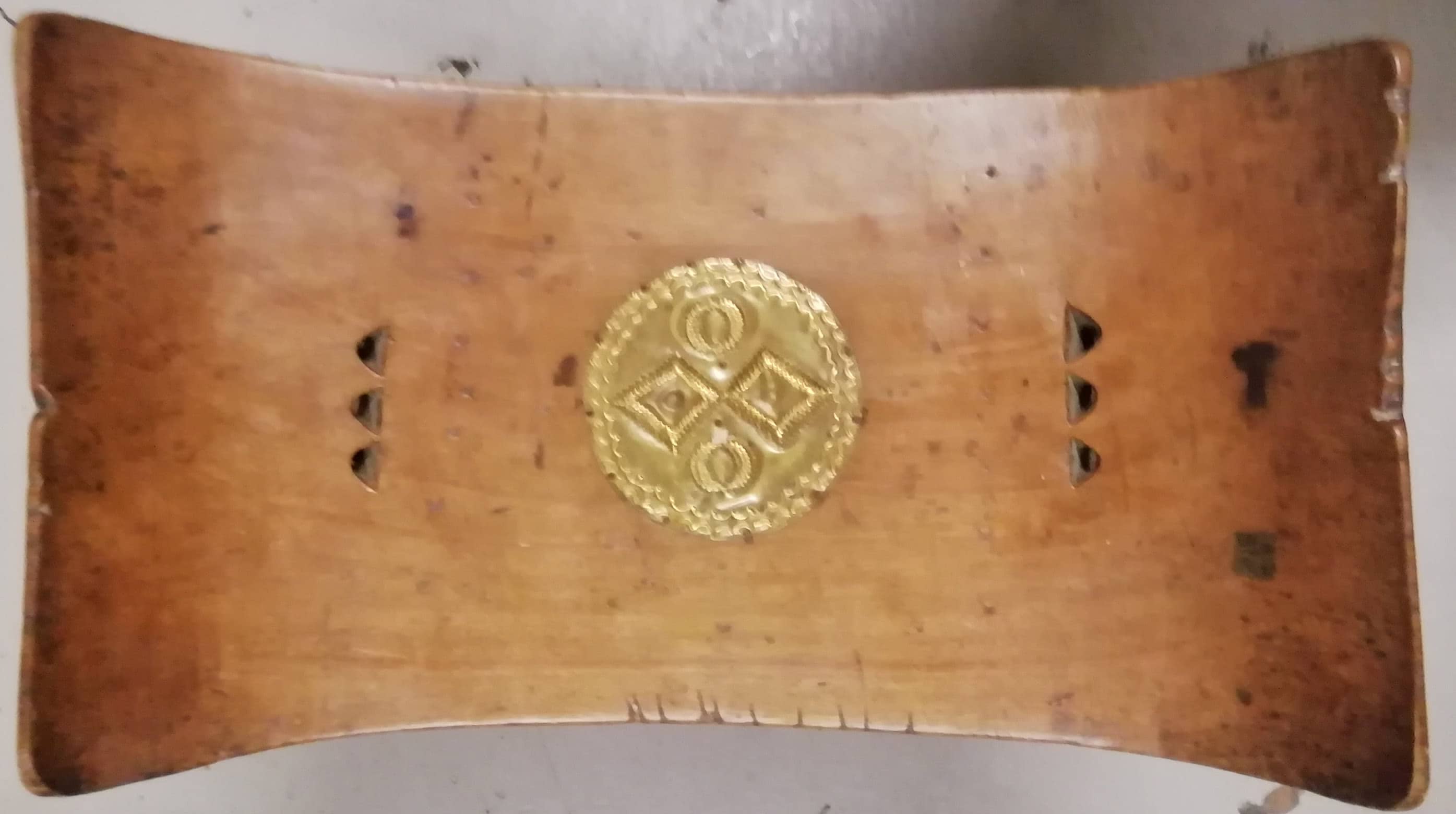 A fine old Ashanti Chiefs stool with Royal Insignia.