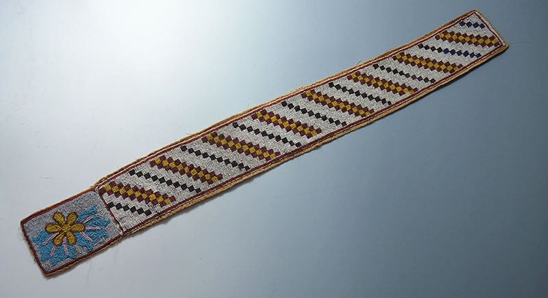 A fine American Indian Ojibwe beaded belt Geometric pattern with floral section, very fine bead work in excellent condition. Eastern Woodlands Last quarter 19th C.
