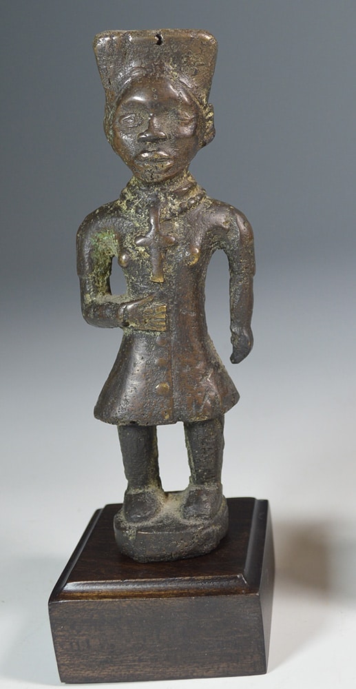 A rare Kongo native in the attire of a catholic priest cast in brass or bronze.