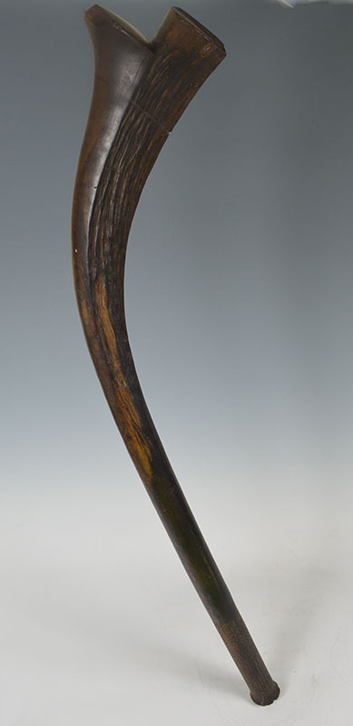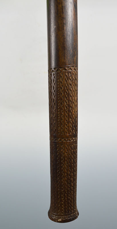 A fine large heavy ironwood club with carved zigzag pattern grip