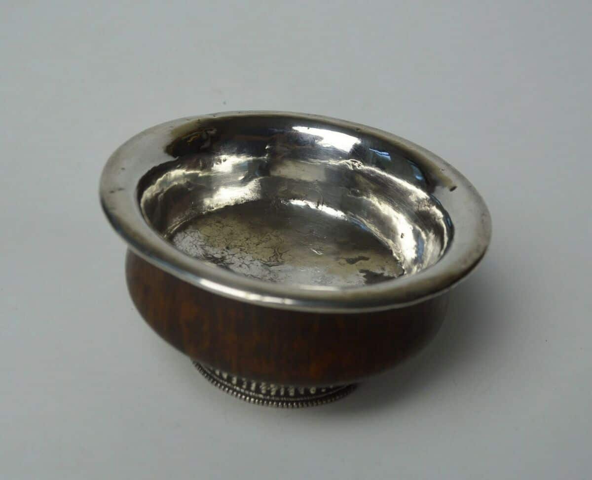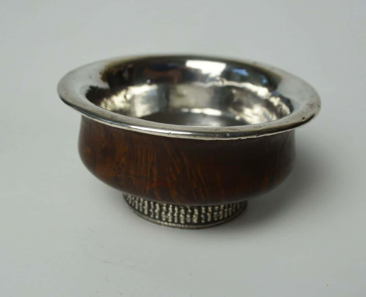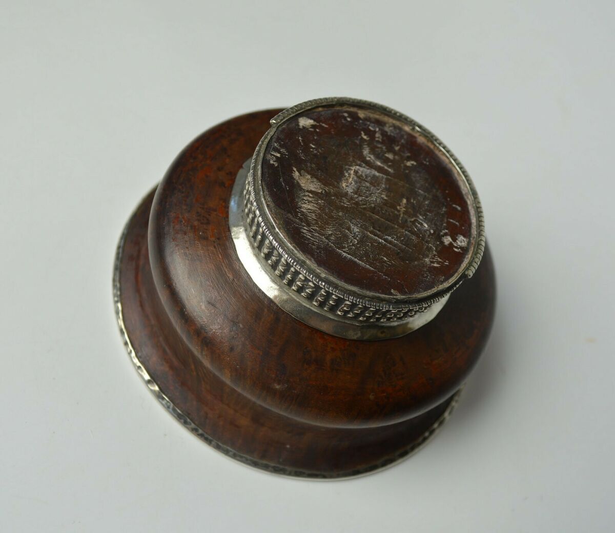 Nice antique Himalayan Tibetan silver wood tea bowl