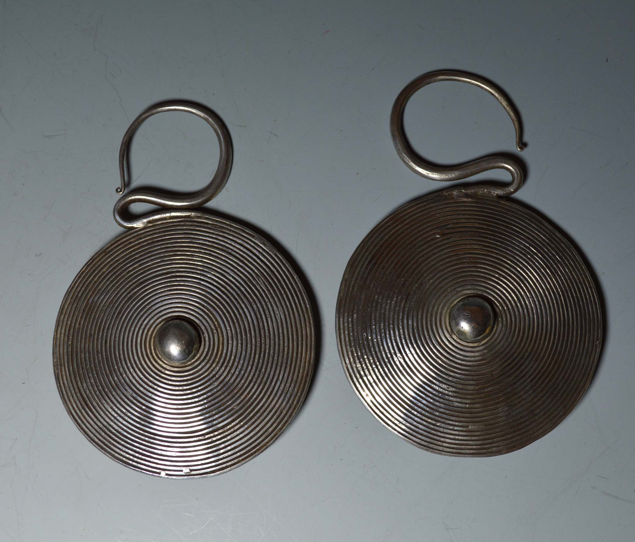 Vintage Miao Chinese ethnic minority Hill tribe silver disc earrings